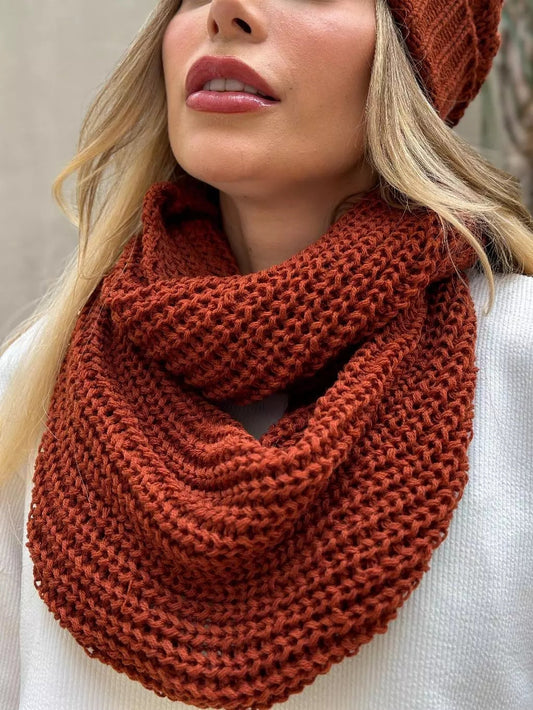 Cachecol Feminino de Tricô em Lã com Duas Voltas