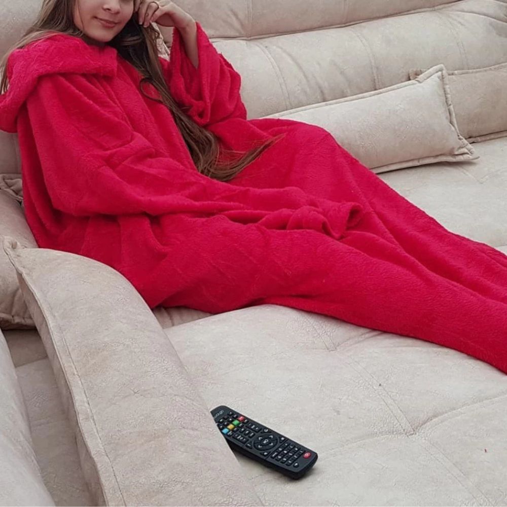 O Cobertor Casaco Unissex com Mangas e Capuz para Inverno é a escolha perfeita para quem valoriza praticidade, mobilidade e aquecimento total.